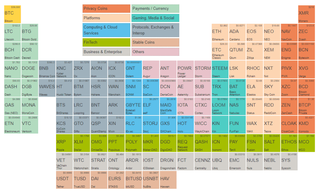 Coin, diperlukan sebagai bentuk unit dari gas fee yang akan ditransaksikan. Setiap network memiliki coin-nya masing-masing. Bitcoin dengan BTC, Ethereum dengan ETH, Binance Smart Chain dengan BNB, Avalanche dengan AVAX dan seterusnya. Periodic table dibawah ini menggambarkan jenis-jenis network yang ada dan coin yang mereka gunakan sebagai satuan gas-nya. Keep in mind, bahwa table ini akan berubah dengan bertambahnya network yang ada.